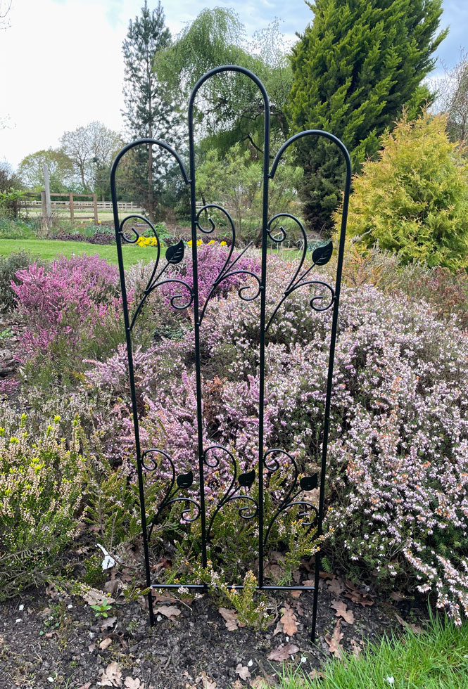 This timeless garden trellis panel of sophisticated design with spirals is known as Tulip trellis which measures 120cm high. These garden wall trellises are made from steel construction, powder coated to withstand the elements and retain its good looks. This, the smaller of two products, is best suited to supporting small and middle sized climbers. The attractive design means that you do not even need to use climbers, it will look great on its own, includes fixing points and fixing kit.