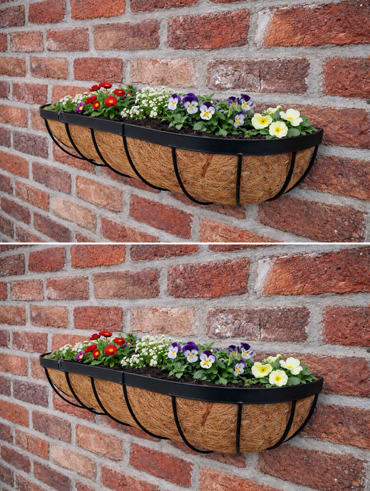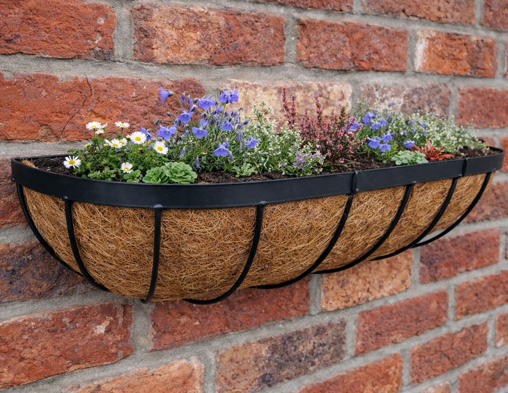 These plant baskets are deep giving better plant growth. These wall baskets are finished using a black power coated epoxy finish. Comes complete with a quality Co-co liner.
