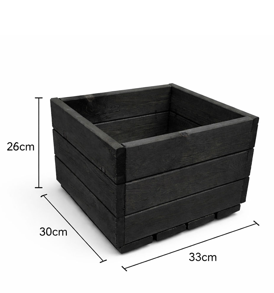 Expertly handmade using high-quality, planed timber measuring 18 mm thick, this wooden garden planter offers excellent strength and long-lasting durability. The planter is treated with a protective black stain, creating a sleek finish while improving weather resistanceideal as an outdoor plant pot for year-round use. Designed with a smooth surface and solid construction, it includes a slatted base that encourages proper drainage and airflow, making it a practical patio planter box for healthy plant growth. Suitable for flowers, herbs, small shrubs, or decorative arrangements, this square wooden planter is a versatile choice for gardens, patios, balconies, entrances, or decking areas. Its sturdy build ensures stability, making it a reliable small wooden planter for outdoor settings.