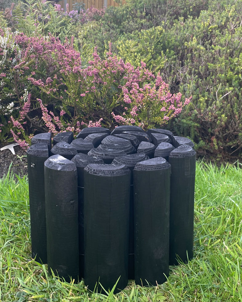 Log wooden garden edging is manufactured from half-round logs measuring 70mm in diameter that have chamfered tops.