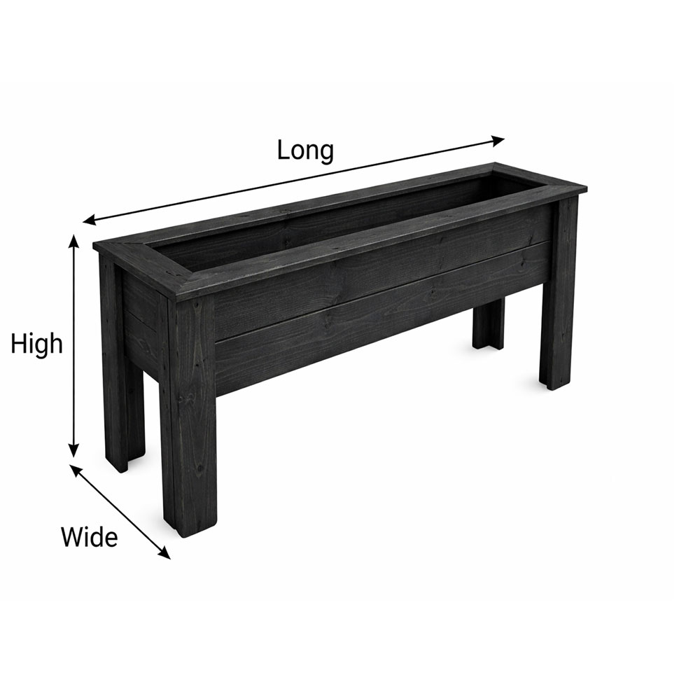 This compact raised wooden planter is supplied fully assembled, so you can start gardening straight away with no tools or setup required. Simply add compost and plants and enjoy hassle-free planting. The raised design provides a comfortable working height, helping to reduce bending and kneeling, making it a great choice for elderly gardeners or anyone looking for easier access. Crafted in the UK from sturdy 18 mm planed timber with 35 mm end boards, it includes a slatted base for effective drainage and healthier root growth. Its neat, space-saving design makes it ideal for patios, balconies, and small gardens, while the black Wood-Shield finish offers weather protection. Perfect for growing herbs, vegetables, flowers, and small plants, with added elevation to help protect them from pets and ground-level pests.