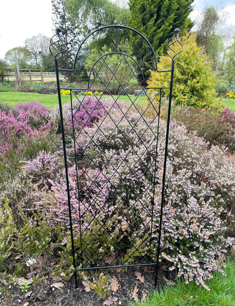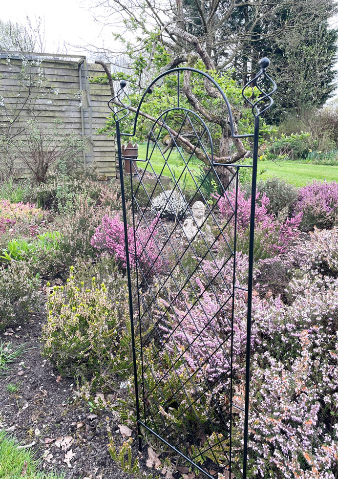 A unique black metal spiral garden trellis that we will suit all gardens modern and traditional.