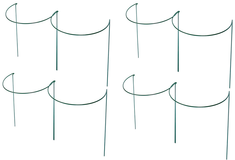 Set of 8 x large green metal plant hoops, ideal for use as a individual plant support or use as multiples to form both circular or linked together for any length of border support. These plant frames can linked together, quick and easy to use, simply push into the soil until firm. This wire plant support is made from 5mm metal wire with green powder coating offer protection from weathering.