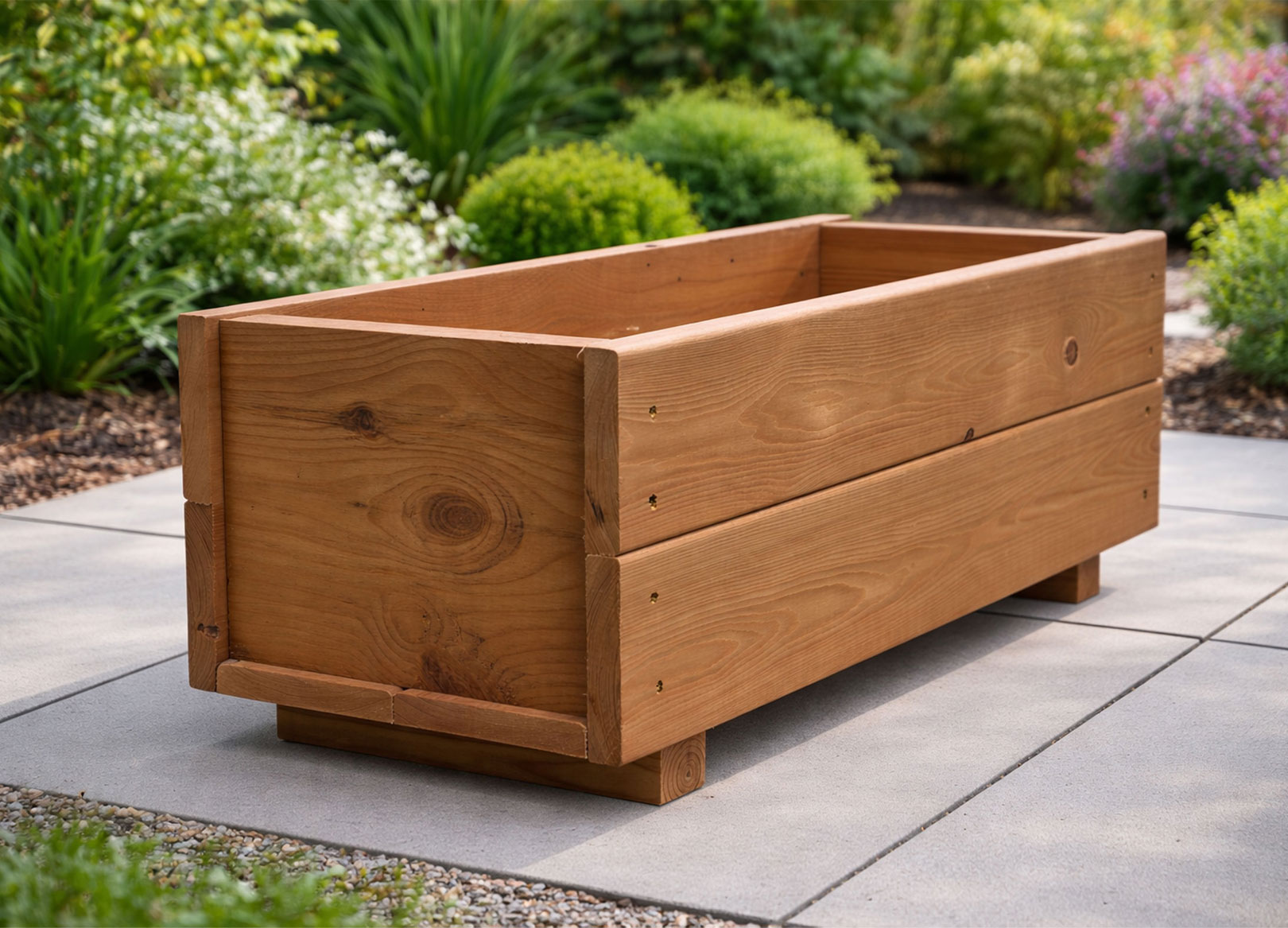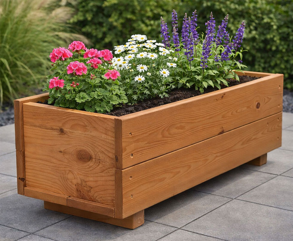 These rectangular 60cm wooden planters are hand made in Yorkshire. These planters are a rustic styled trough planter made from Swedish redwood. This handmade wood box is finished stain to protect against weather conditions. This planter is known as the Tatton Planter. All this range of planters is a durable and will make a stunning feature, ready assembled, made from FSC timber.